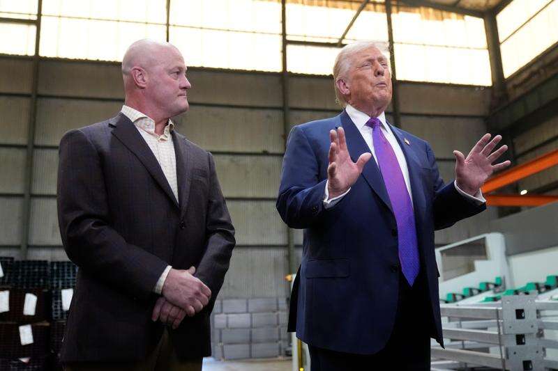 After his early focus on the state's voting system, Trump refocused his comments on the economy as he toured a steel company whose owner said it had benefited from the president's tariffs.