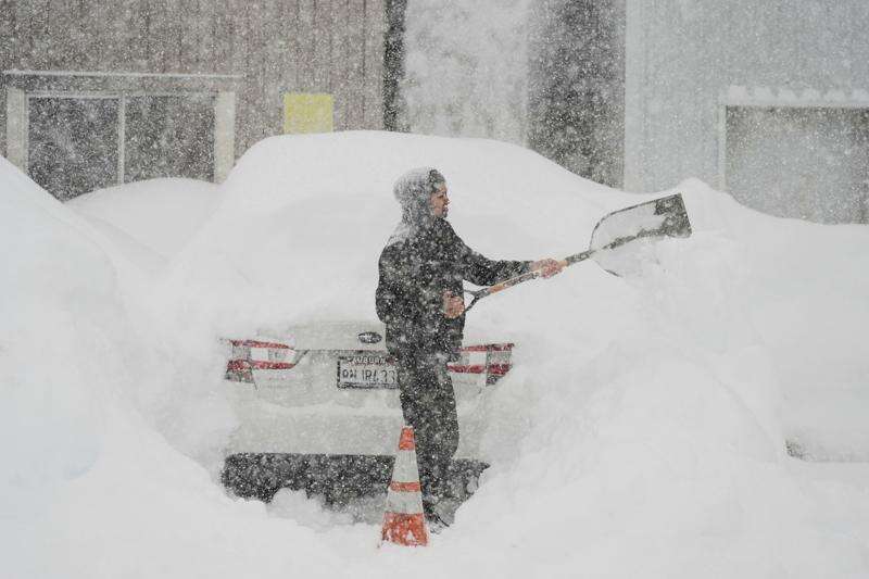 Several more feet of snow could fall around Lake Tahoe on Thursday and continue to destabilize the fragile snowpack, according to the Sierra Avalanche Center. It said that wind gusts along the ridgetops could reach 60 mph (100 kph) and warned there's a high risk of large avalanches through at least Friday morning. Tahoe National Forest lands in the Castle Peak area were also closed to the public until March 15.