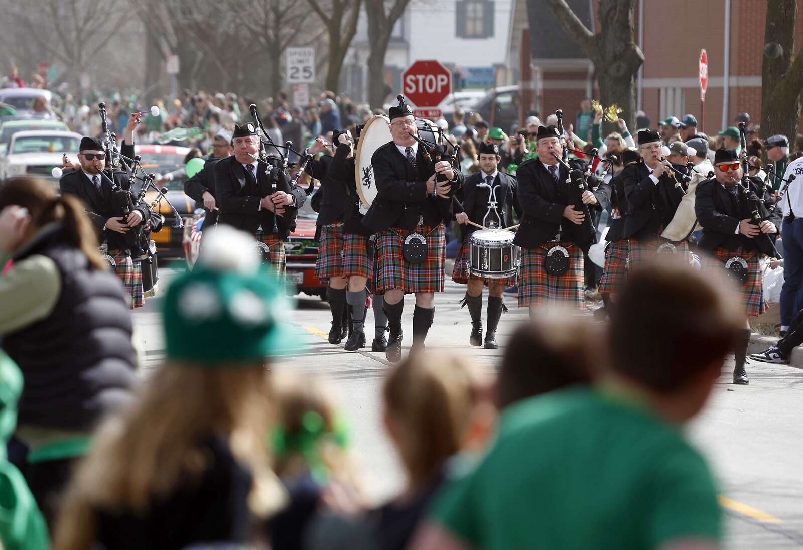The Midlothian Scottish Pipe Band performs to the delight of paradegoers during the 13th annual Durty St. Pat’s Parade in Palatine last year. This year it will be called the “Palatine St. Patrick’s Parade.” Brian Hill/bhill@dailyherald.com