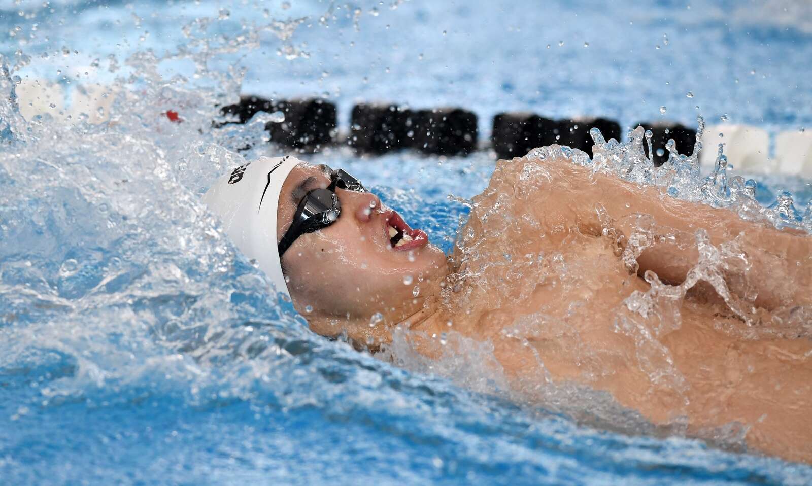 Stevenson’s Allan Zhu swims the backstroke leg of the 200-yard individual medley during the boys state swimming and diving finals at the FMC Natatorium on Saturday, Feb. 28, 2026 in Westmont. Joe Lewnard/jlewnard@dailyherald.com