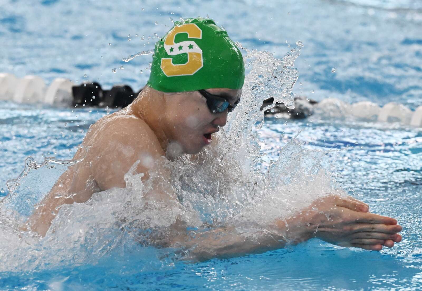 Stevenson’s Allan Zhu swims the 100-yard breaststroke during the boys state swimming and diving finals at the FMC Natatorium on Saturday, Feb. 28, 2026 in Westmont. Joe Lewnard/jlewnard@dailyherald.com