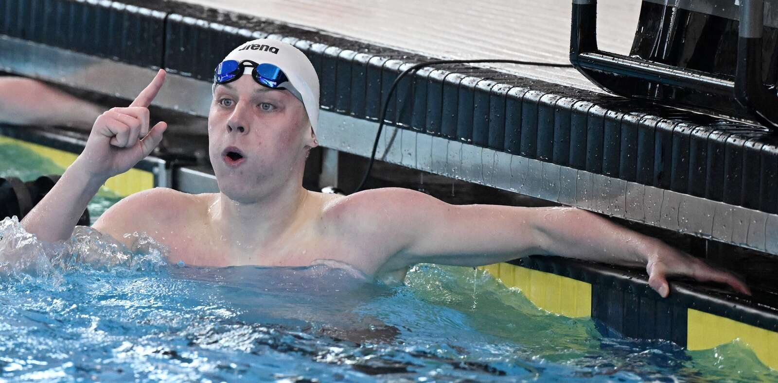 Vernon Hills’ Yury Plaksin reacts to his victory in the 100-yard freestyle during the boys state swimming and diving finals at the FMC Natatorium on Saturday, Feb. 28, 2026 in Westmont. Joe Lewnard/jlewnard@dailyherald.com