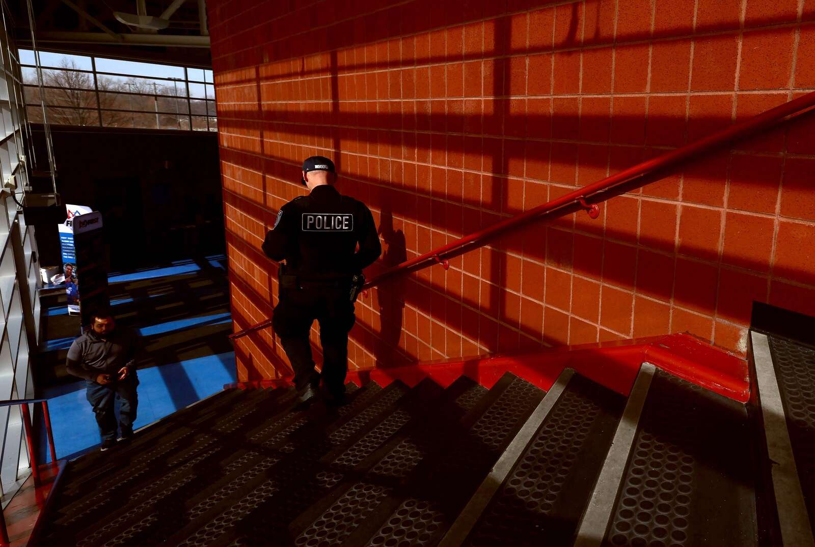 An Elgin Community College Police Officers makes his rounds during the Illinois FIRST LEGO League Challenge State Robotics Championship at Elgin Community College Saturday, Feb. 14, 2026 in Elgin.
