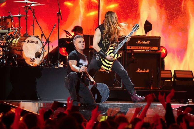 Robbie Williams lead a tribute to the late Ozzy Osbourne, who died last year. Williams was joined by Black Sabbath members, performing a special arrangement of “No More Tears.”