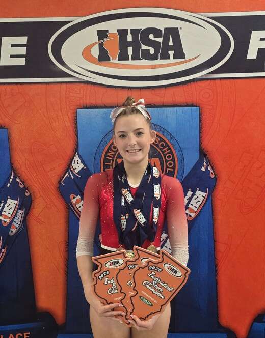 The senior won the state all-around championship, placing first on the uneven parallel bars and vault, third on beam and fourth in the floor exercise.