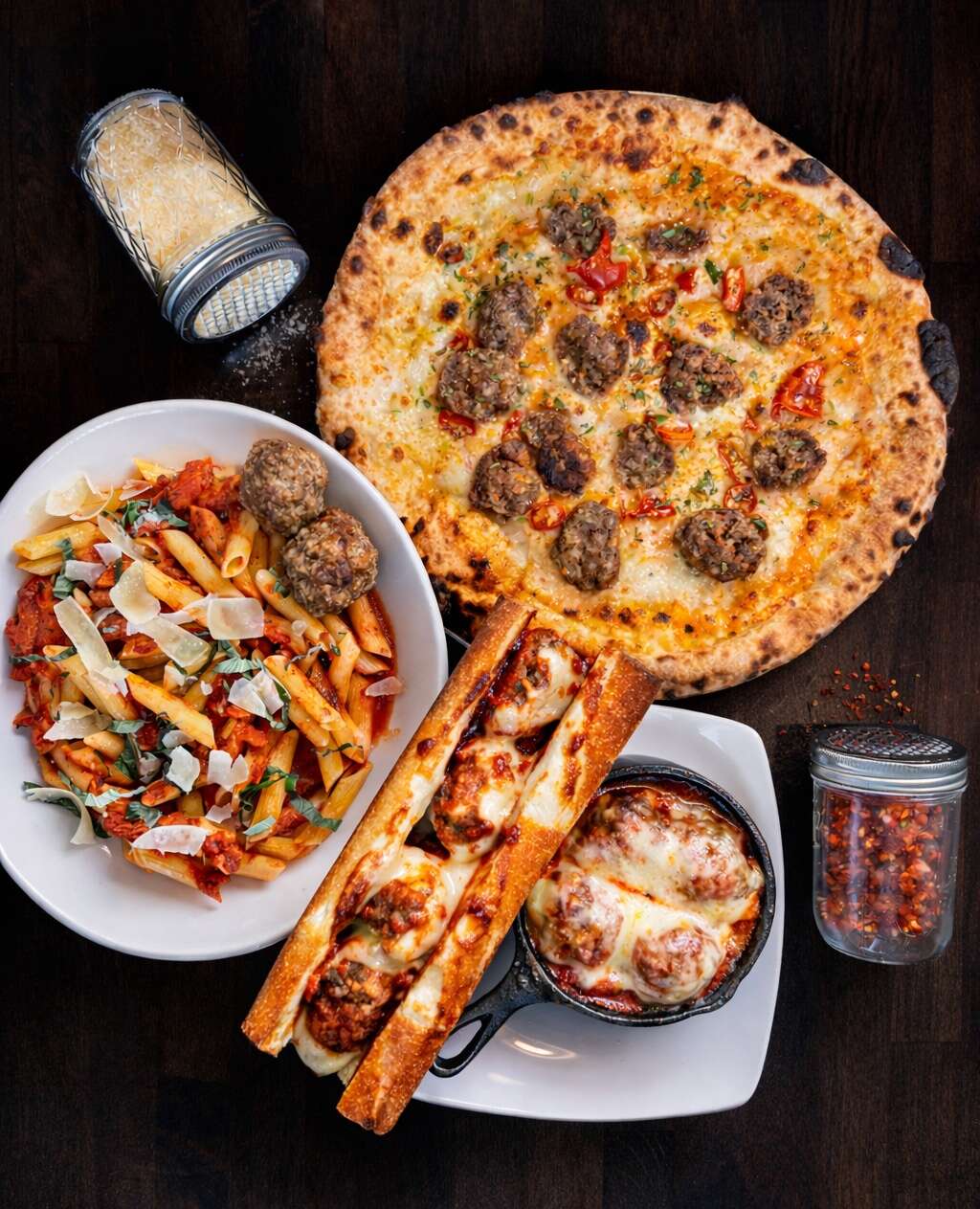 The menu spotlights customer-favorite meatball dishes, starting with Jose’s Meatballs, featuring house-made meatballs baked in a cast-iron skillet, topped with house tomato sauce, melted provolone and fresh parsley. You can also find those meatballs in the “Meatball Sangwich,” the pasta marinara with meatballs and the meatball vodka pizza, built with vodka sauce, sliced meatballs, house cheese blend and Calabrian chiles.