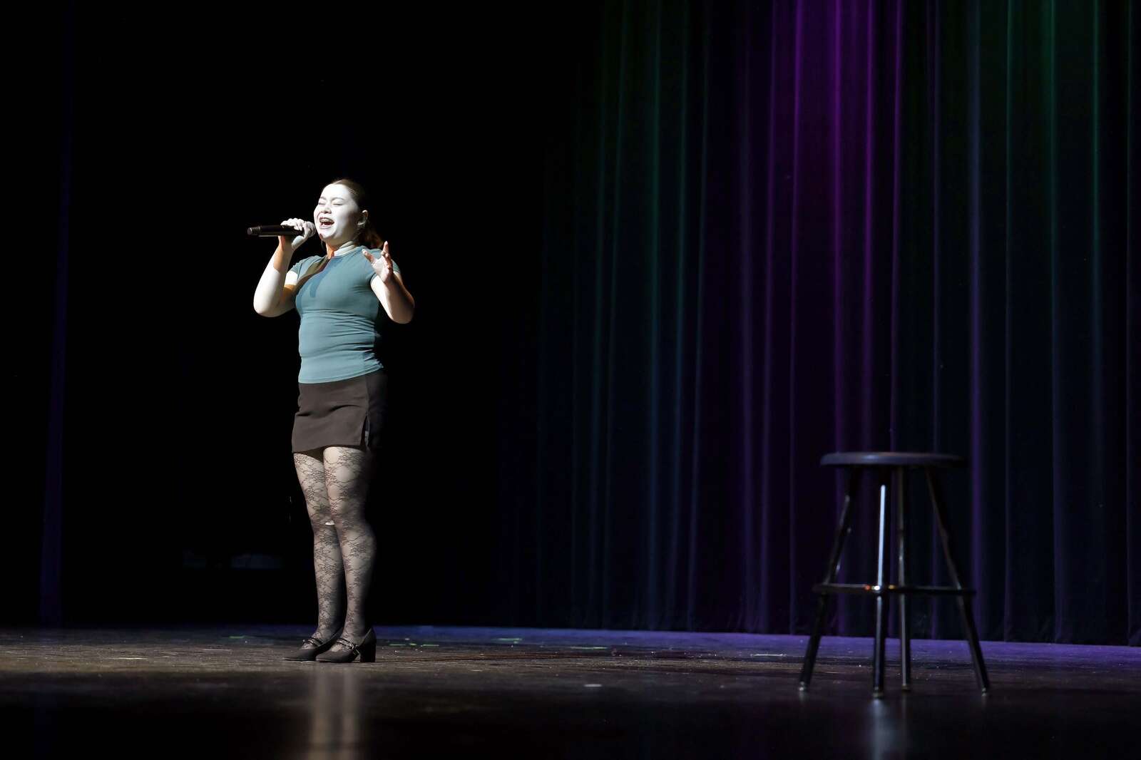 Jocelyn Nunez sings “Clockwork” by Laufey at the Streamwood High School Talent Fest on Jan. 29. She will be performing at the March 10 TalentFest at the Hemmens. Courtesy of John Konstantaras