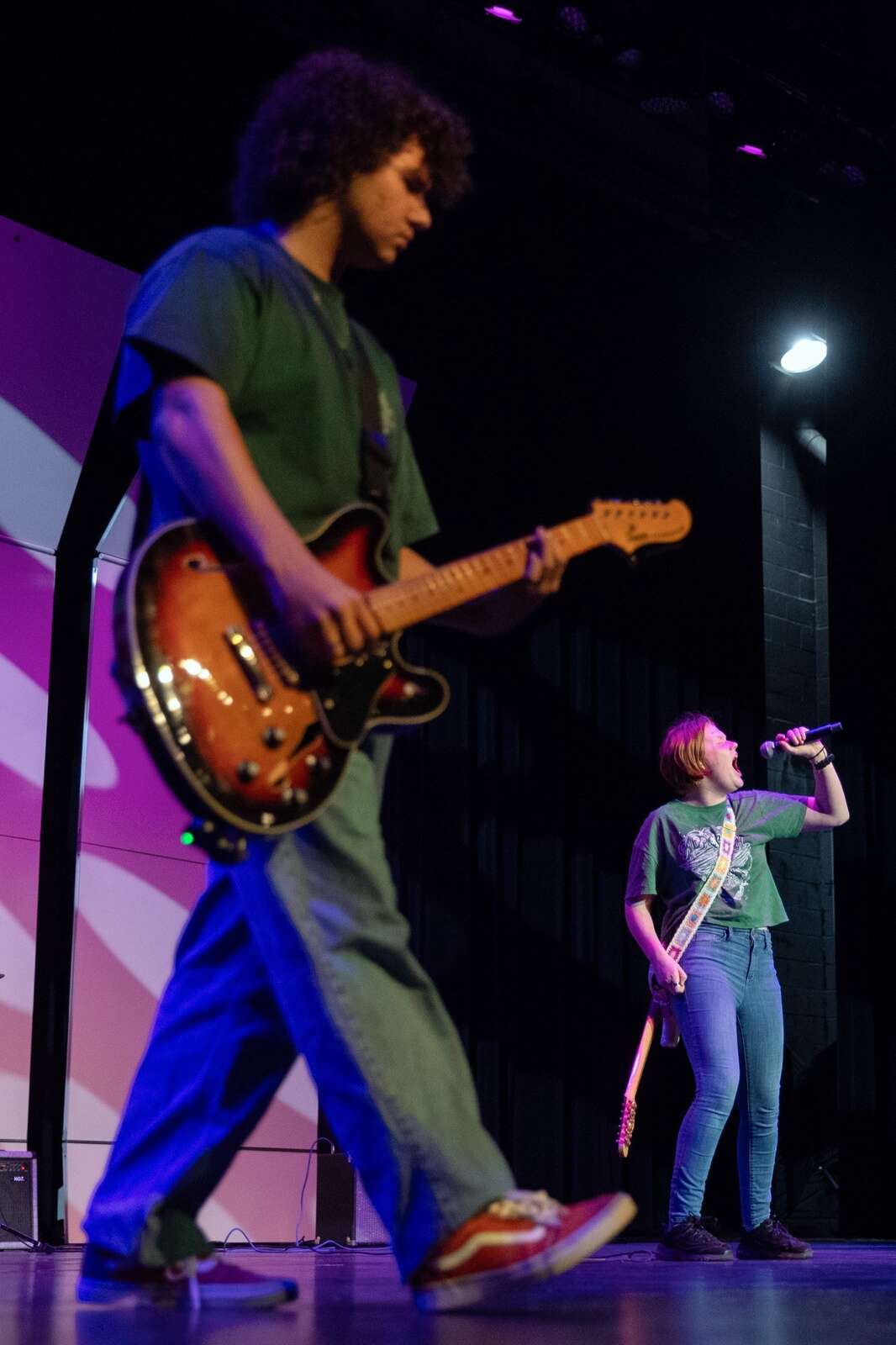 Shed Your Skin, featuring Lucas Guerra, left, and Delilah Terry, perform “Bleed American” by Jimmy Eat World during the Bartlett talent show Feb. 18. The duo will represent the school during the 2026 U-46 TalentFest at the Hemmens on March 10. Courtesy of John Konstantaras