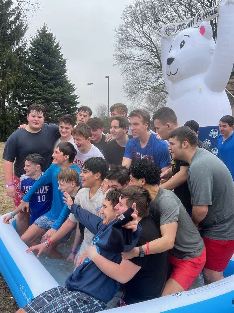 The plunge is organized by Marmion junior Jameson Brave who is leading the effort for the second year. Students, faculty, and staff jump into a pool of icy water set up in Marmion’s Quad after raising donations to support athletes with intellectual disabilities.