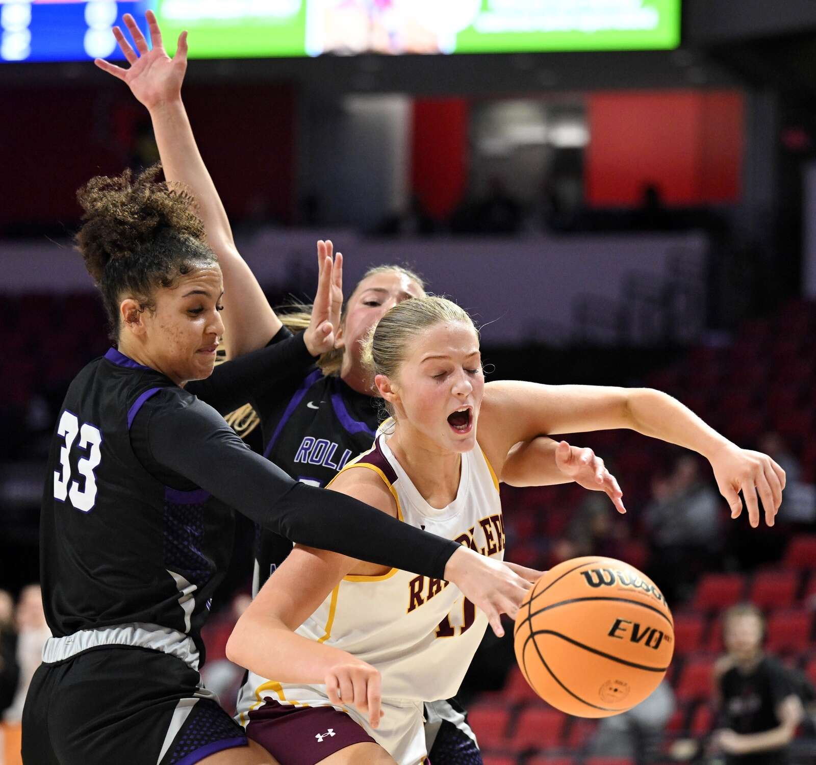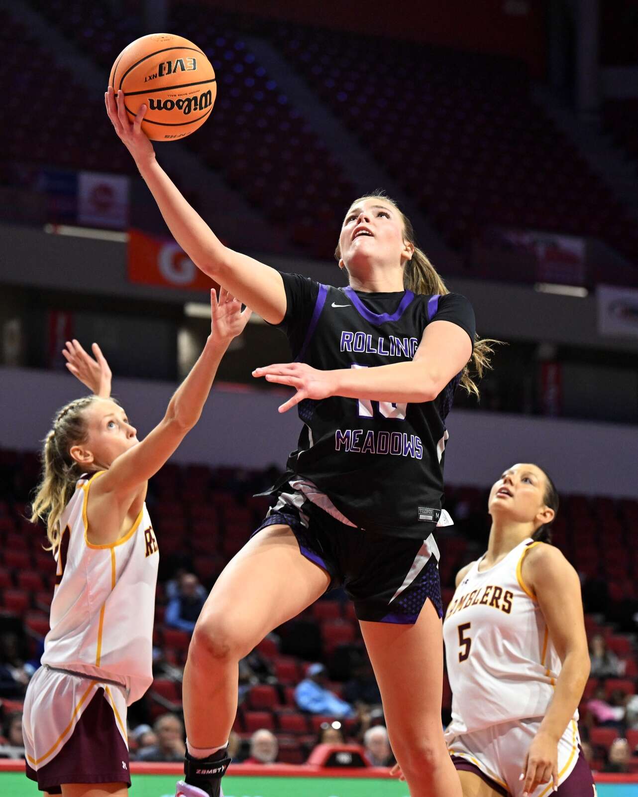 Rolling Meadows senior Nell Osterhues (5 points, 3 steals) tossed home a 25-foot 3-pointer with 5:31 left in the third quarter, cutting the lead to 24-19, and moments later Ramel hit a 17-footer from behind the free-throw line to make it 26-21.