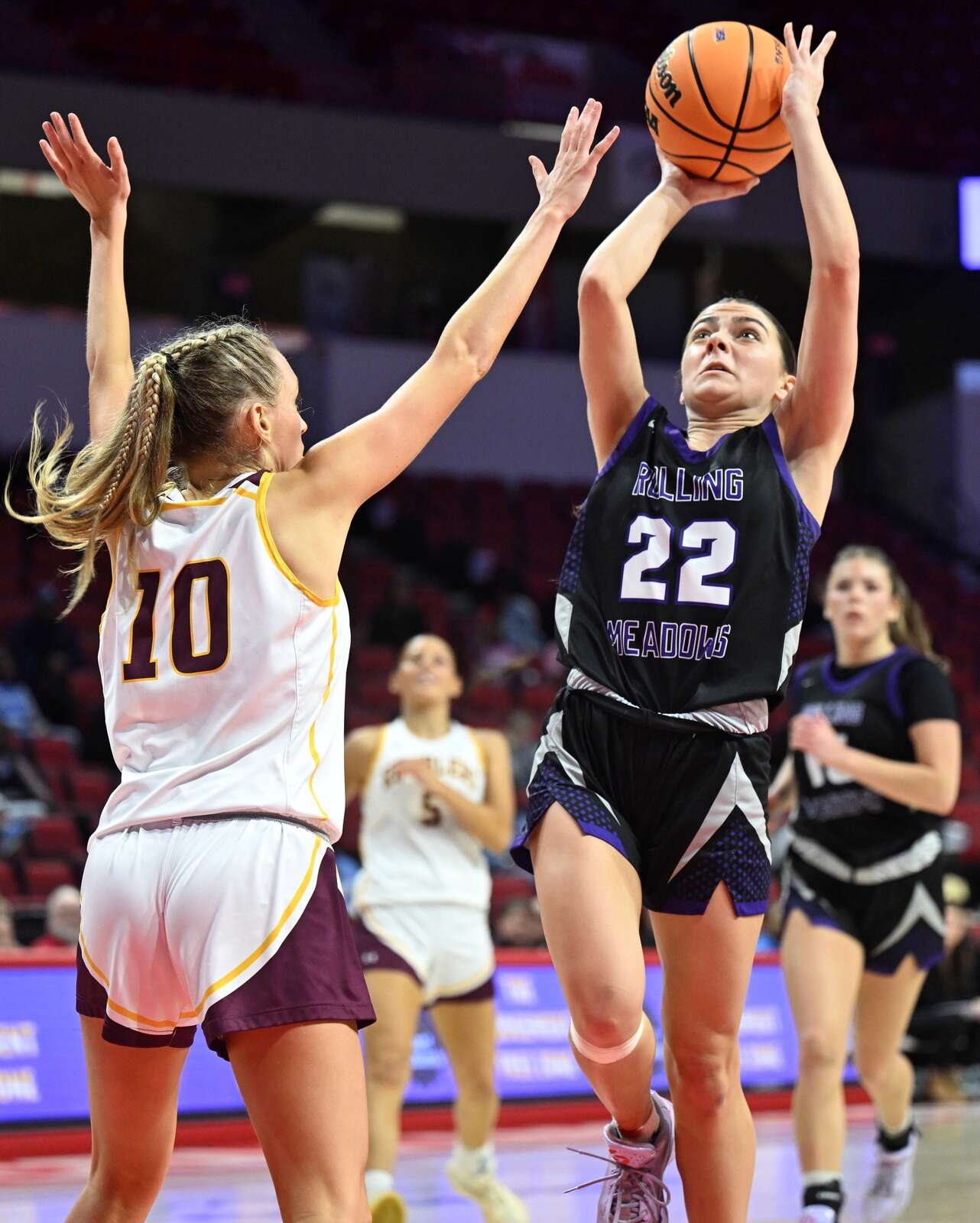 Rolling Meadows (22-11) trailed 10-6 after the first period but got to within 14-11 when junior Irish Jordan drilled a 17-footer with 5:35 left in the second half.
