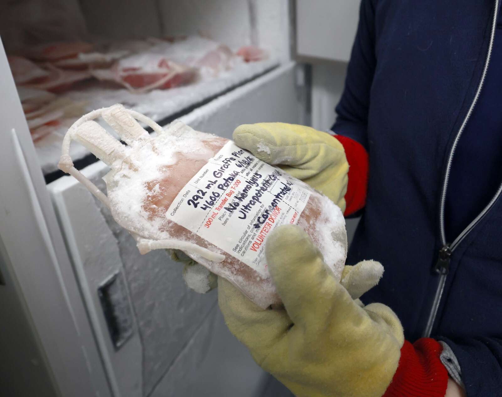 Parkinson uses yet another machine, an automated cell processor, to add that glycerol solution to the red blood cells. The samples are staying in an extremely cold research freezer for six months.