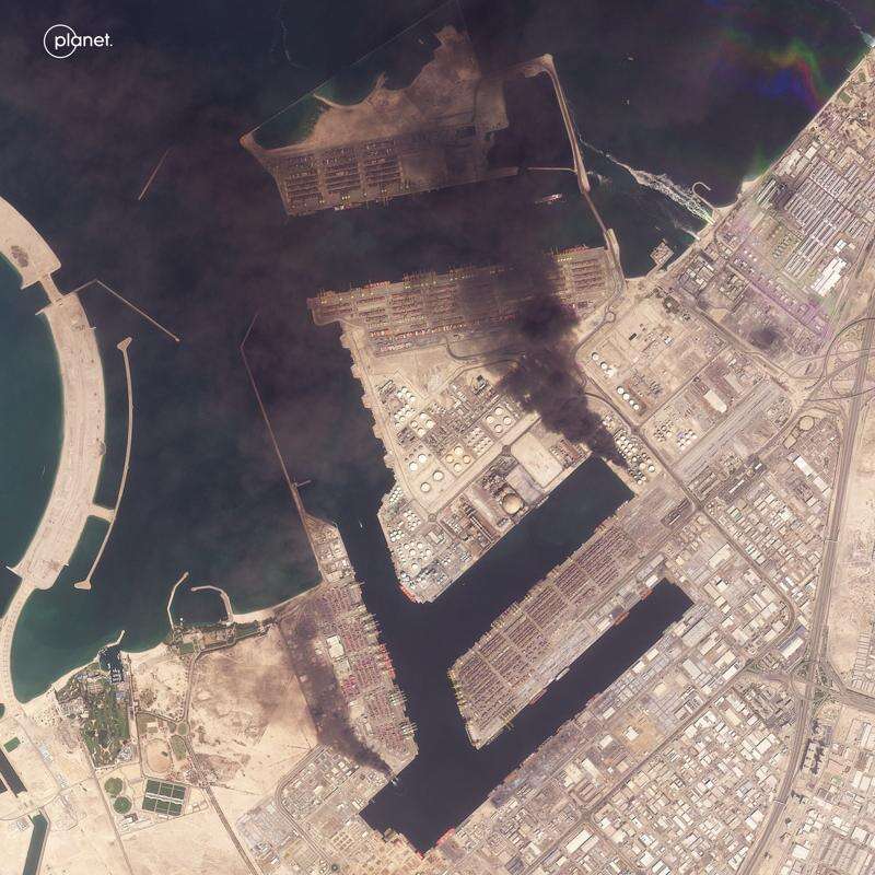 FILE - This image provided by Planet Labs PBC shows the Jebel Ali Port in Dubai, United Arab Emirates, March 1, 2026. (Planet Labs PBC via AP, File) (Planet Labs PBC via AP, File)