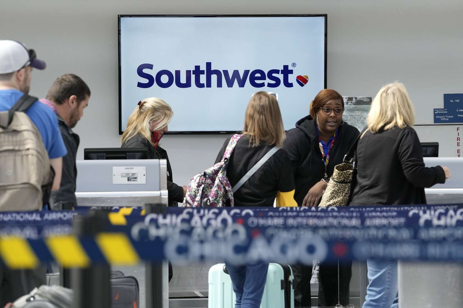 Travelers check in at Southwest Airline ticket counter at O'Hare International Airport in April 2023. The carrier is pulling out of O’Hare and consolidating at Midway International Airport. AP