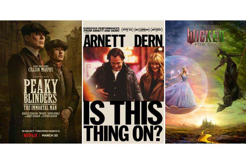 “Peaky Blinders: The Immortal Man,” “Is This Thing On?” and “Wicked for Good” hit streaming this week. Courtesy of Netflix, Searchlight Pictures, Universal Pictures