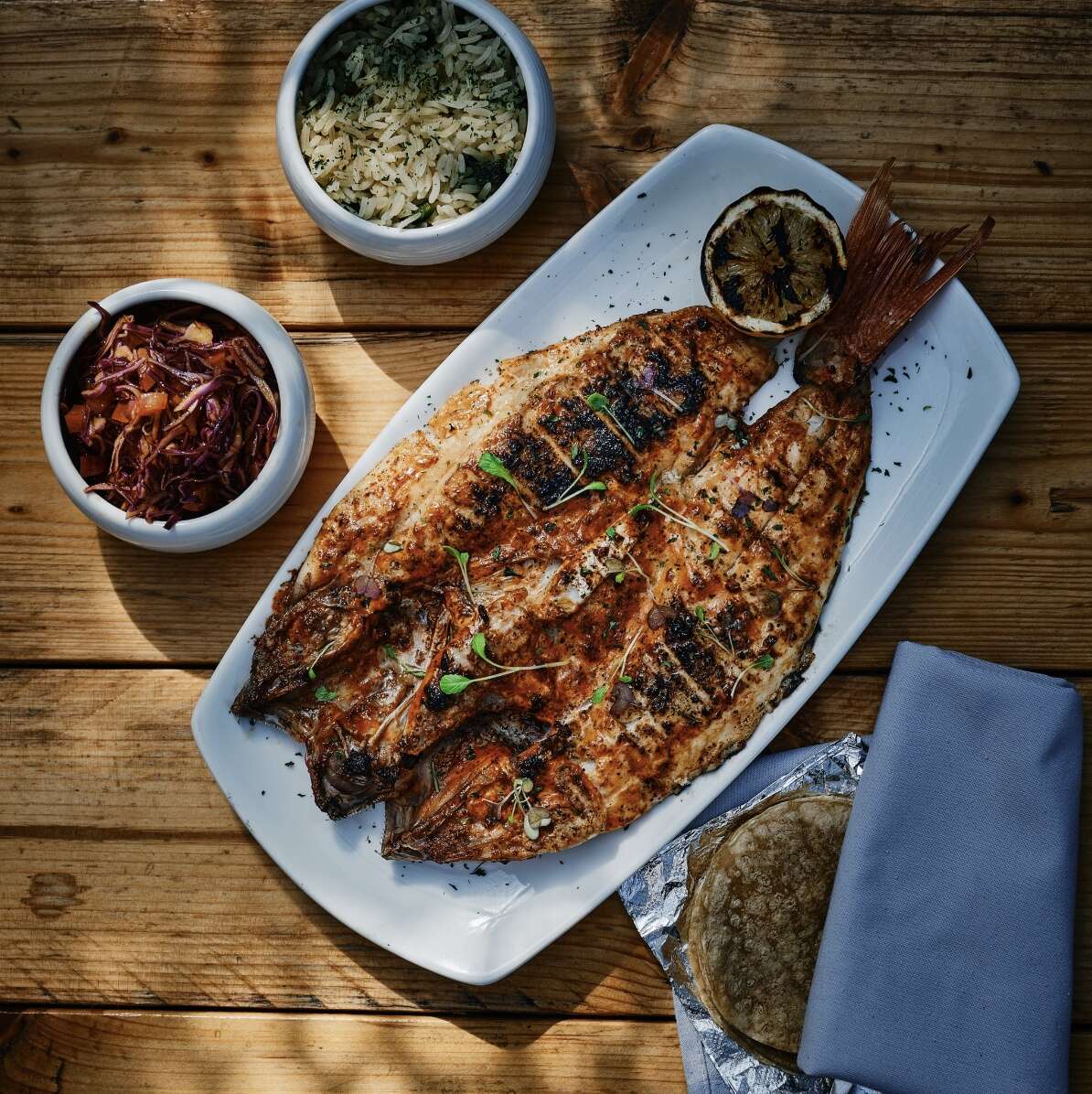 Bien Trucha in Geneva and Quiubo in Naperville are serving up a pescando zarandeado special on Fridays through April 3. The whole butterflied snapper is served with morita adobo, rice, red cabbage, chile morita vinaigrette and tortillas.