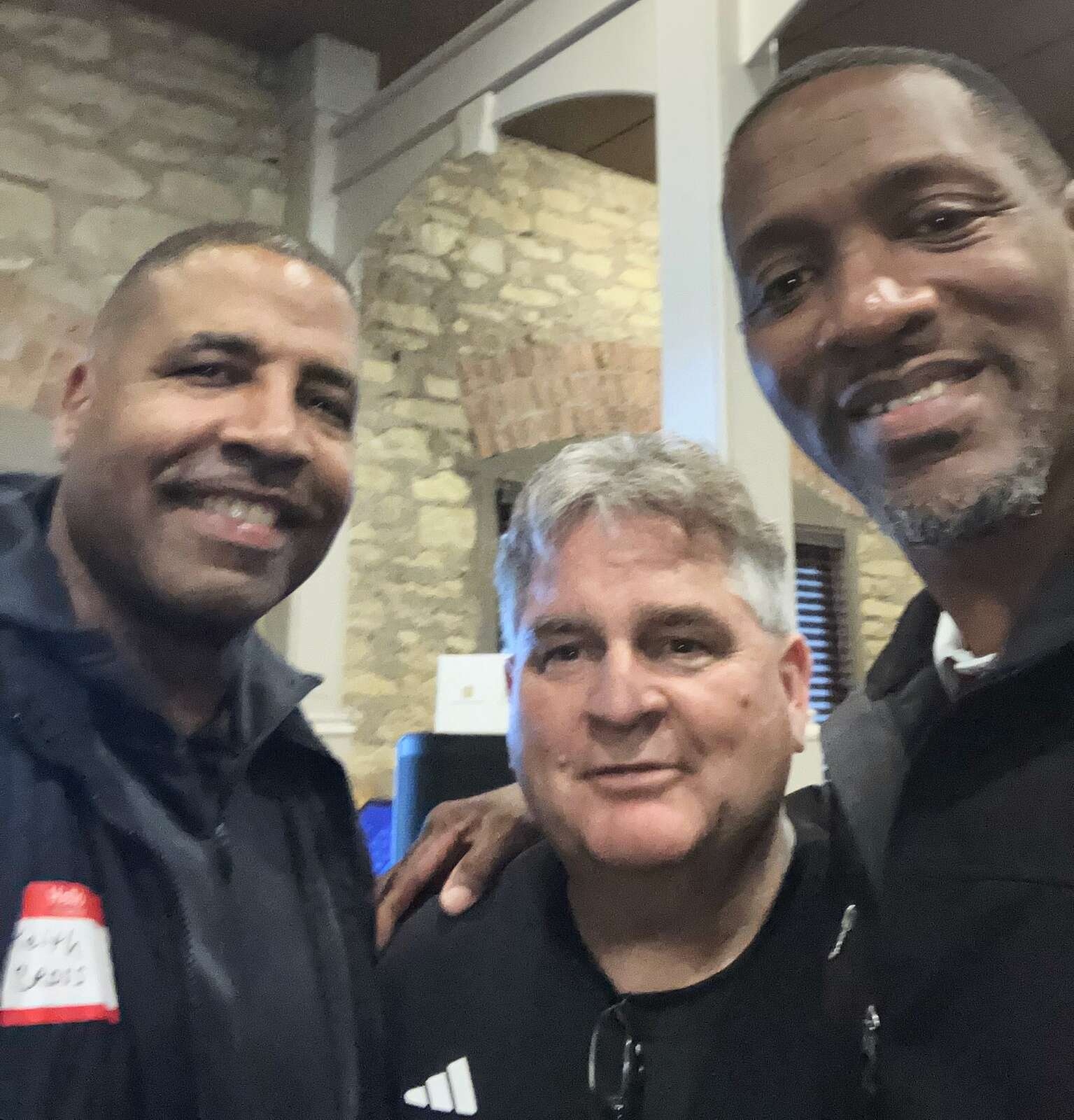 Enjoying the fourth Fox Valley Basketball Reunion are, from left, former East Aurora player Keith Cross, retired Batavia High School boys basketball coach Jim Roberts, and former East Aurora player Thomas Wyatt. Courtesy of Jim Roberts