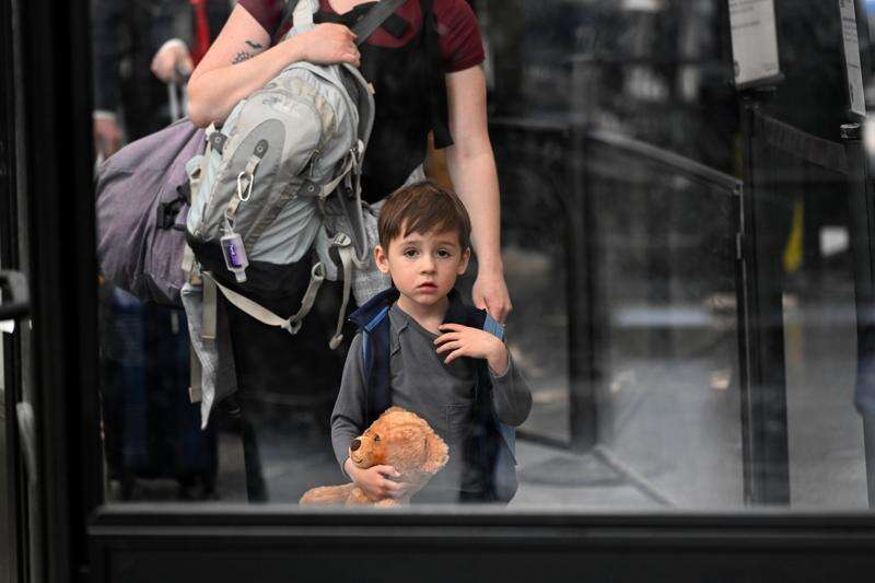 A young passenger waits in line with his mother to be checked in with TSA at O'Hare Airport on Thursday in Chicago. AP Photo/Paul Beaty