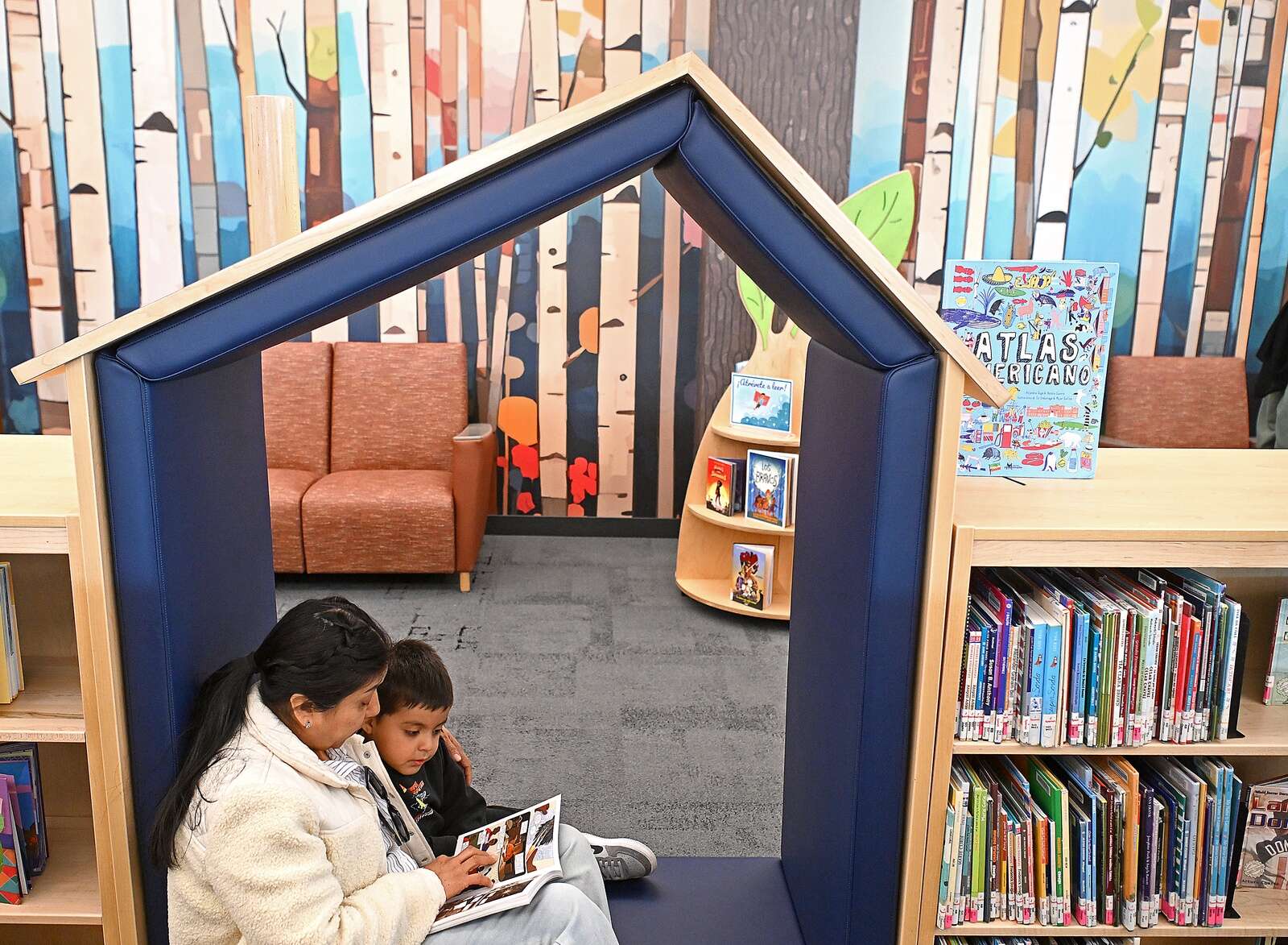 Pilar Garcia reads to her grandson Leo Vazquez, 5, in one of the many nooks at the Gail Borden Public Library’s newly renovated KidSpace. They’re both from Elgin. Rick West/rwest@dailyherald.com