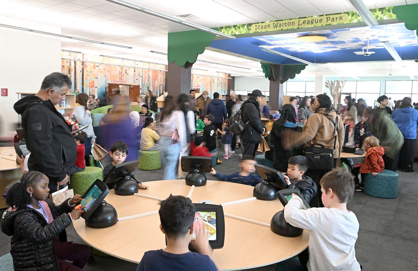 The new area features a centralized “Izaak Walton League Park” that carries on the nature theme from phase one of the renovation. The bright space has myriad seating areas to enjoy books and other resources, as well as gaming and e-learning stations.