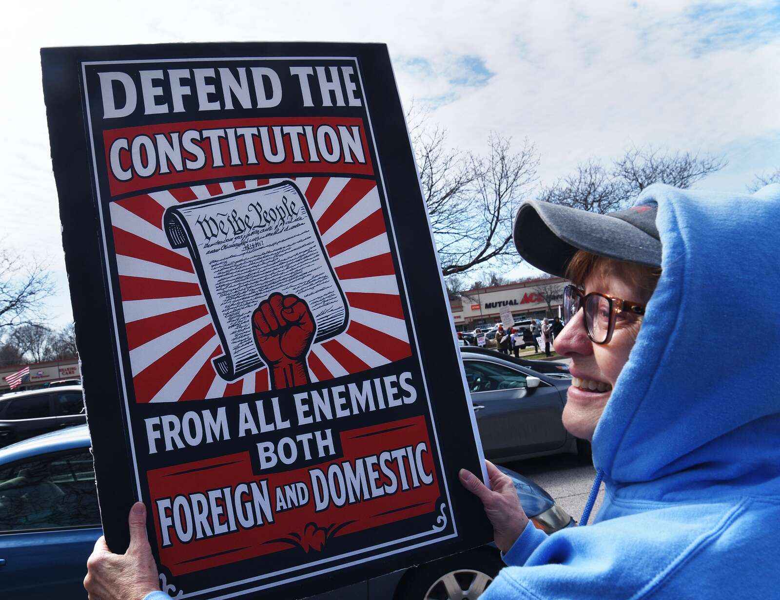 Buffalo Grove resident Liz Cooper was among the demonstrators in her hometown.