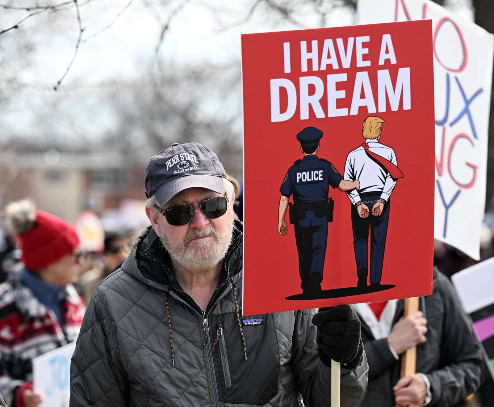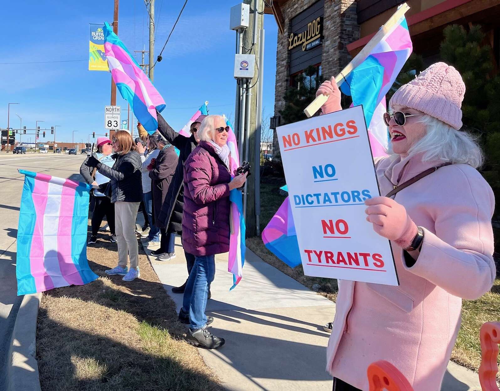 Sign-waving demonstrators took to streets across the suburbs Saturday to express their disapproval of President Donald Trump’s policies as part of national “No Kings” rallies.