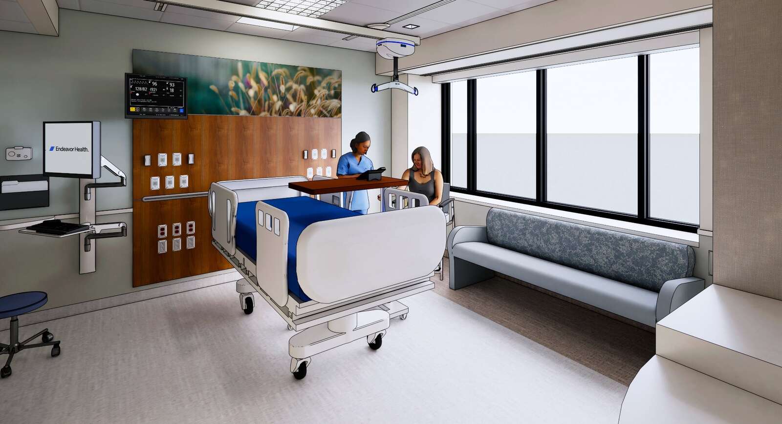 Endeavor Health plans a new, 10-bed intensive care unit on the fourth floor of the Edward Heart Hospital in Naperville as part of a nearly $29 million project. Rendering courtesy of Endeavor Health