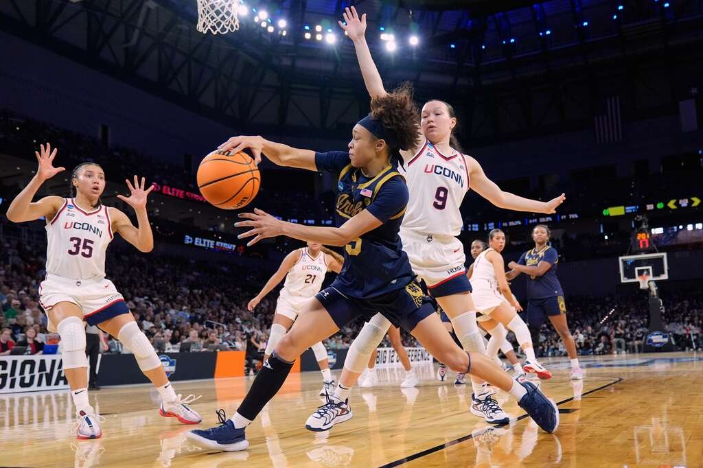 The ninth NCAA tourney meeting between the Huskies and the Irish was their first with a spot in the Final Four on the line. They had both made it that far the first eight times they met in March Madness, the last in 2019 when Notre Dame won a semifinal game over UConn and then lost to Baylor in the title game.