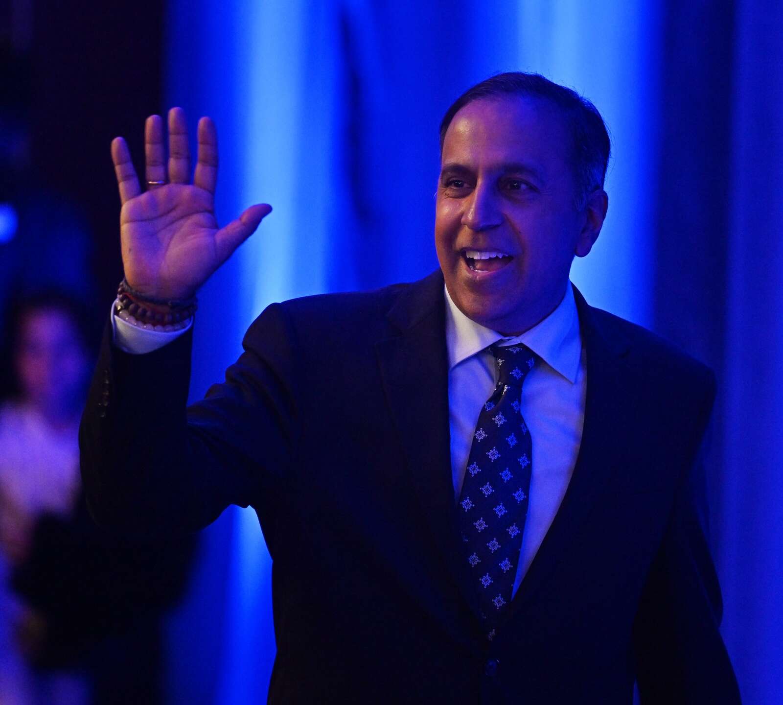 Democratic candidate of U.S. Senate Raja Krishnamoorthi waves to supporters prior to delivering his concession speech at his election party at the Westin Michigan Avenue on Tuesday, Mar. 17, 2026 in Chicago.