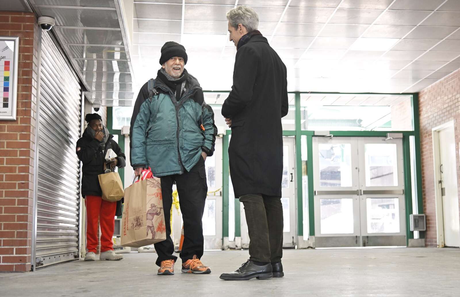 Evanston Mayor Daniel Biss talks with train riders as they exit the Davis St. L stop in Evanstion on Wednesday, Mar. 18, 2026. He won the District 9 congressional nomination the night before.