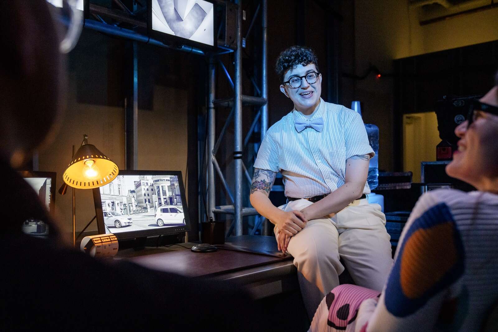 Em Modaff is one of the actors playing David, the guide in David Byrne and Mala Gaonkar's immersive theater installation “Theater of the Mind,” co-produced with Goodman Theatre. Courtesy of Todd Rosenberg Photography