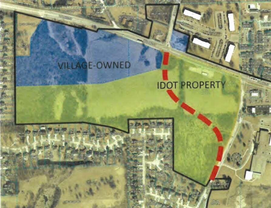 Key to the plan are acquisition of the remaining 43 acres currently owned by the Illinois Department of Transportation and the realignment of Oak Avenue’s approach from the south to create a four-way signalized intersection at Bartlett Road.