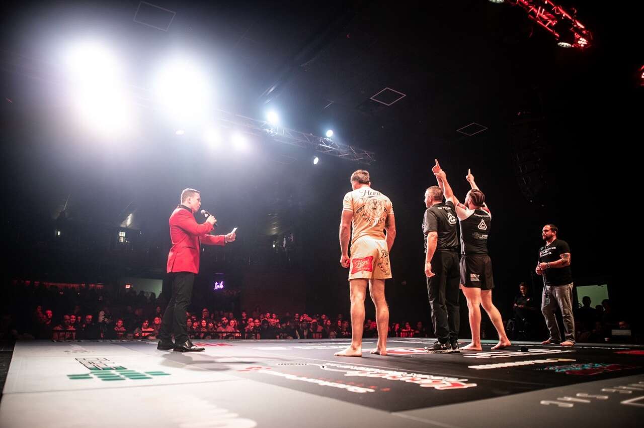 He studies fighters’ backgrounds, weight class information and more to create ideal pairings. And, having been a part of the pro MMA scene, Curran learned well the elements of putting on an entertaining show. He hires a crowd-pleasing emcee, has a panel of judges ready for split decisions in the relatively rare instance no submission is achieved, makes sure the stage lighting is just right, produces a livestream available on YouTube, and chooses venues that favor both the fighters and the audience.