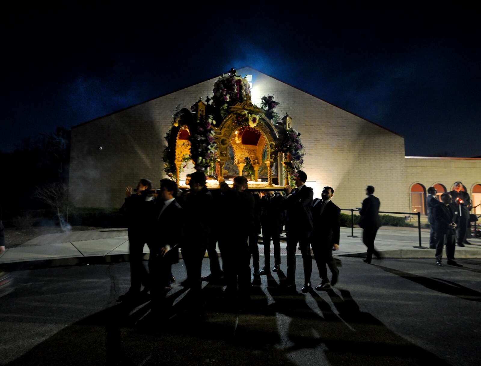 1,500 parishioners proceed through the grounds of St. Nectarios Greek Orthodox Church in Palatine, following the ornate Epitaphios, which represents the tomb of Christ, at the end of the Holy Friday service on Apr. 10, 2026. The church is experiencing remarkable growth.