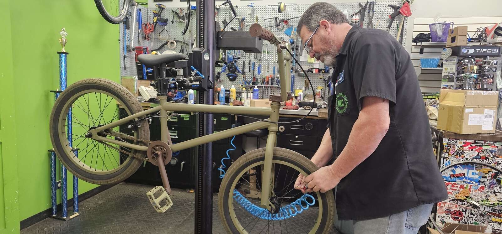 Since 2021 Gable estimated more than 1,600 bikes and 1,600 helmets (“We don’t provide a bike without a helmet”) have been collected, repaired and donated. Such an undertaking takes shops willing to lend their services and skills, ensuring that refurbished bikes are reliably safe. Gable approached several shops in 2021 after establishing the nonprofit.