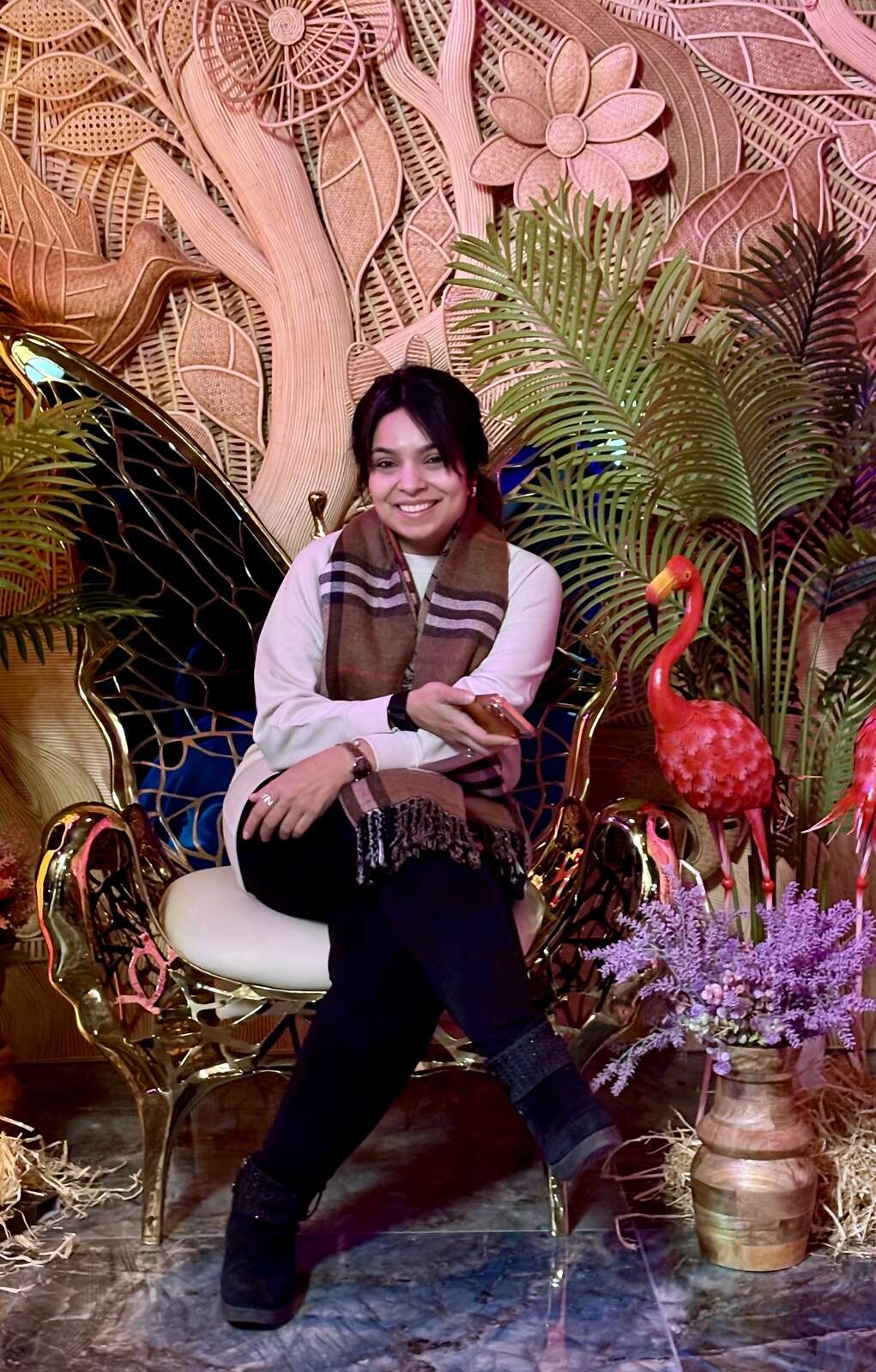 Chef Aanal Kotak sits in the gold throne in the lobby of The Secret Kitchen in Schaumburg. Courtesy of Kirtan Patel Photography