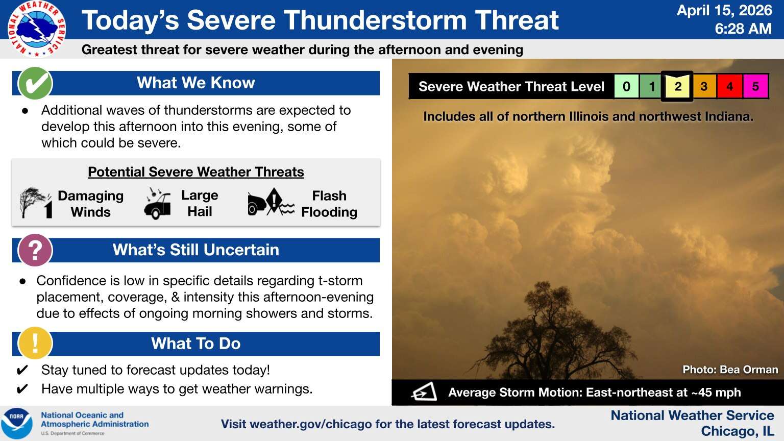Storms are expected throughout the suburbs beginning this afternoon and into the evening. There is potential for large hail, damaging winds and even tornadoes throughout Northern Illinois and Northwest Indiana.