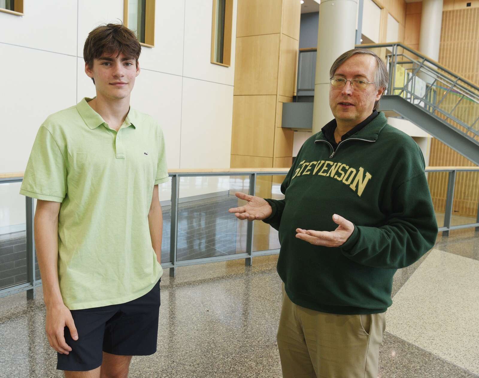 Stevenson High School head scholastic bowl coach Brian Oberhauser, right, says 2026 national individual champion Spencer Manning, is more than an elite competitor, he’s a team player and a good sport. Joe Lewnard/jlewnard@dailyherald.com