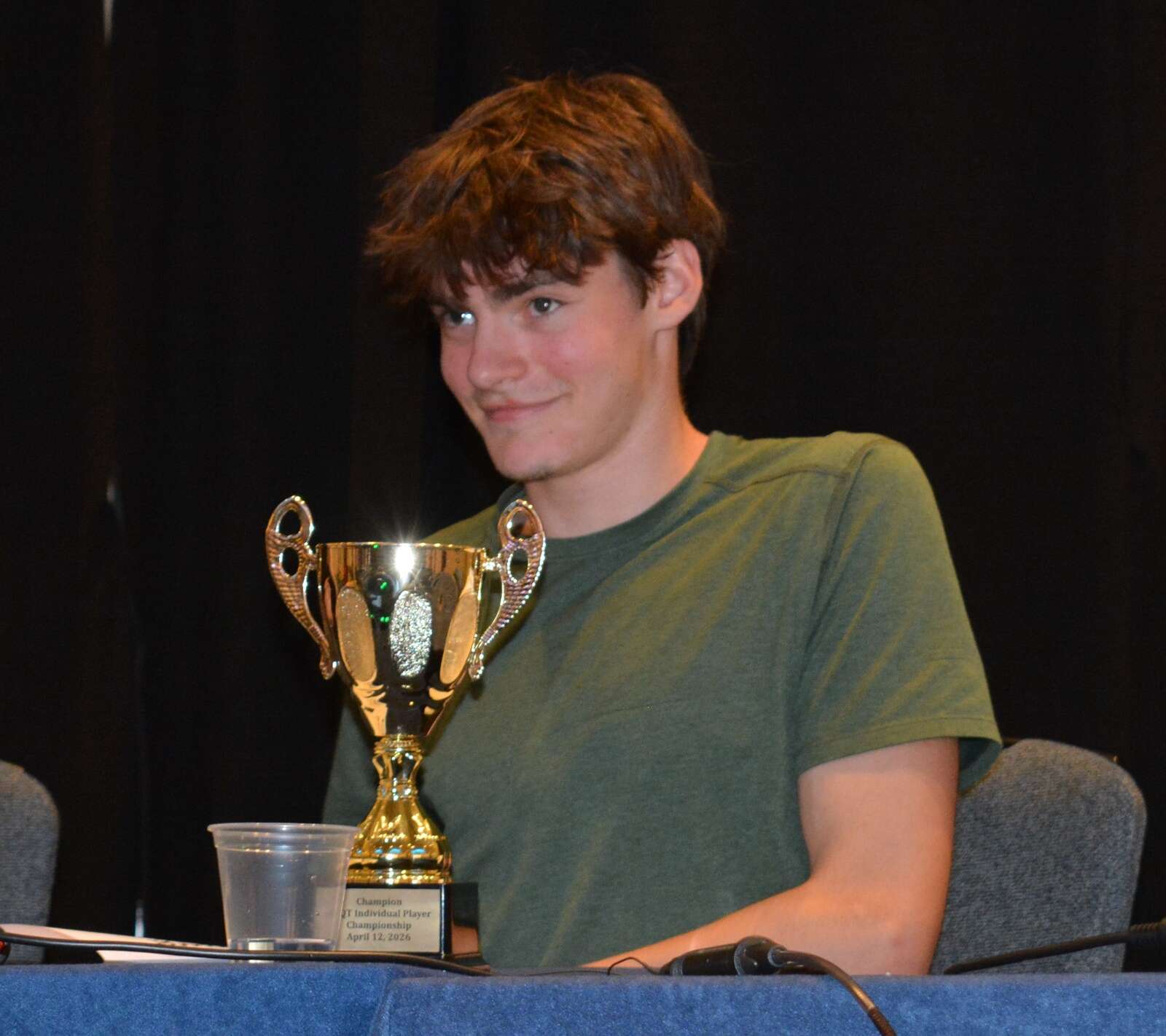 Stevenson High School scholastic bowl champion Spencer Manning earned his national championship trophy earlier this month in Rosemont. Courtesy of NAQT