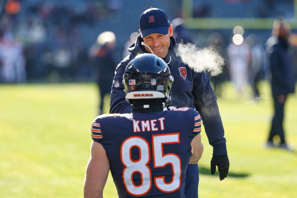 Kmet is set to have an $11.6 million cap hit this year with a $3.2 million dead cap hit if the team cuts him after June 1, according to Over The Cap. But after meeting with Johnson and general manager Ryan Poles at the end of last season, Kmet didn’t think he would be anywhere else.