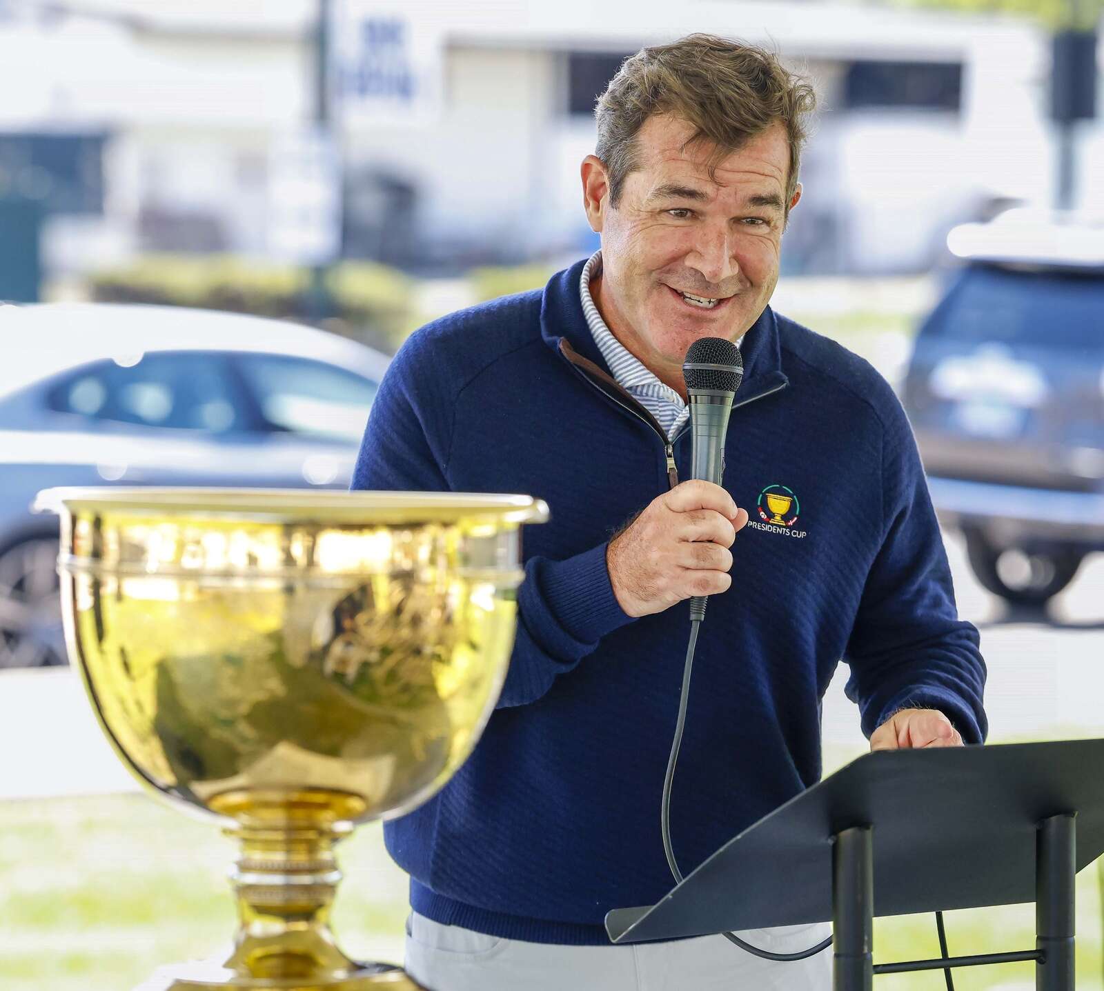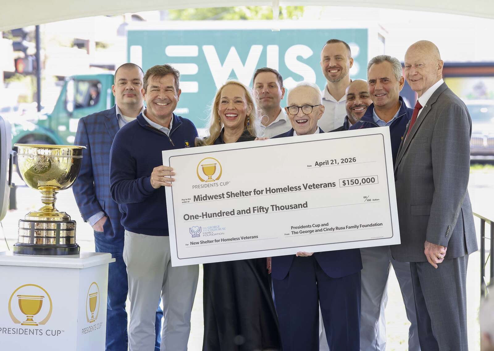 At a kickoff celebration at the future site of the building, organizers of the Presidents Cup golf tournament on Tuesday announced a $150,000 donation in partnership with the George and Cindy Rusu Family Foundation to support the Midwest Shelter for Homeless Veterans.