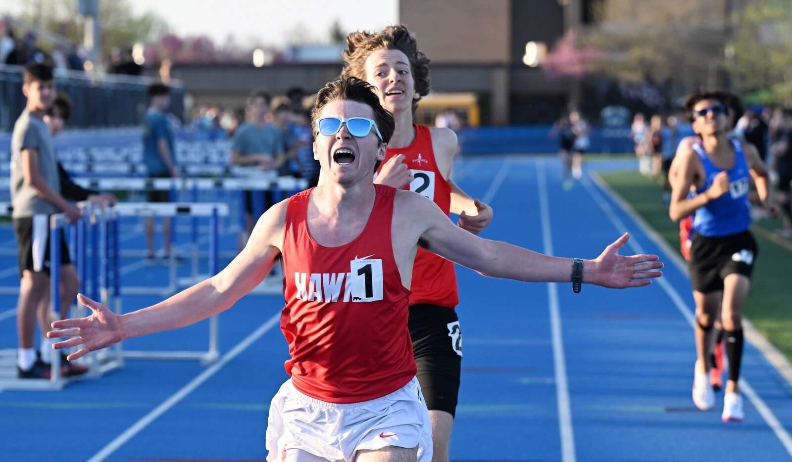 Nathan Sauber and Andrew Raistrick were among the leaders for Huntley. They both podiumed in the mile. Sauber ran a 4:34.29 while Raistrick ran a 4:31.31.