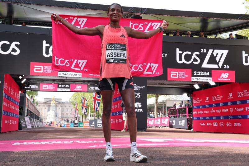 A record also went down in the women's race, with Ethiopia’s Tigst Assefa pulling away with about 500 meters remaining to win in 2:15:41 and defend the title in the fastest-ever time in a women’s-only marathon.