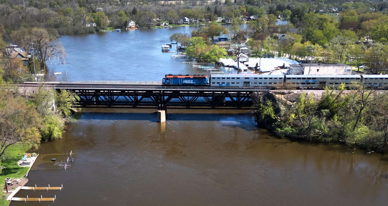 A Metra train rolls across the Fox River between Cary and Fox River Grove on Thursday. A law establishing a new governing authority for Metra, Pace and the CTA goes into effect in five weeks. Paul Valade/pvalade@dailyherald.com