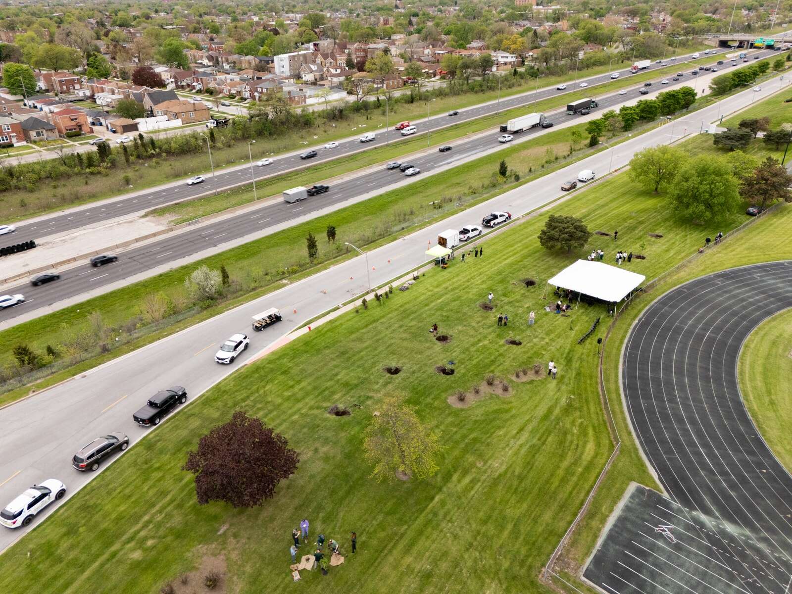 Chicago State University and The Morton Arboretum’s Chicago Region Trees Initiative partnered to plant 20 trees along the Bishop Ford Freeway corridor on campus to celebrate Arbor Day and promote sustainability among the community.