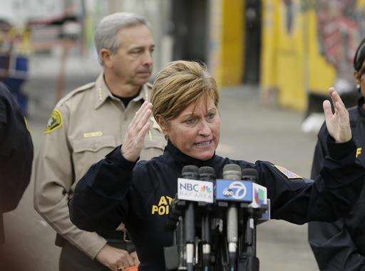 Special agent in charge of the San Francisco office of the Bureau of Alcohol, Tobacco, Firearms and Explosives Jill Snyder gestures while speaking about the stairway inside a warehouse fire Wednesday, Dec. 7, 2016, in Oakland, Calif. Investigators said the fire that occurred during a dance party at an Oakland warehouse grew rapidly and was raging by the time people on the second floor of the building detected it, trapping them upstairs. (AP Photo/Eric Risberg)