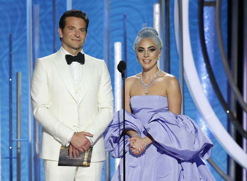 This image released by NBC shows Bradley Cooper, left, and Lady Gaga presenting the award for best actor in a TV comedy series at the 76th Annual Golden Globe Awards at the Beverly Hilton Hotel on Sunday, Jan. 6, 2019, in Beverly Hills, Calif. (Paul Drinkwater/NBC via AP)