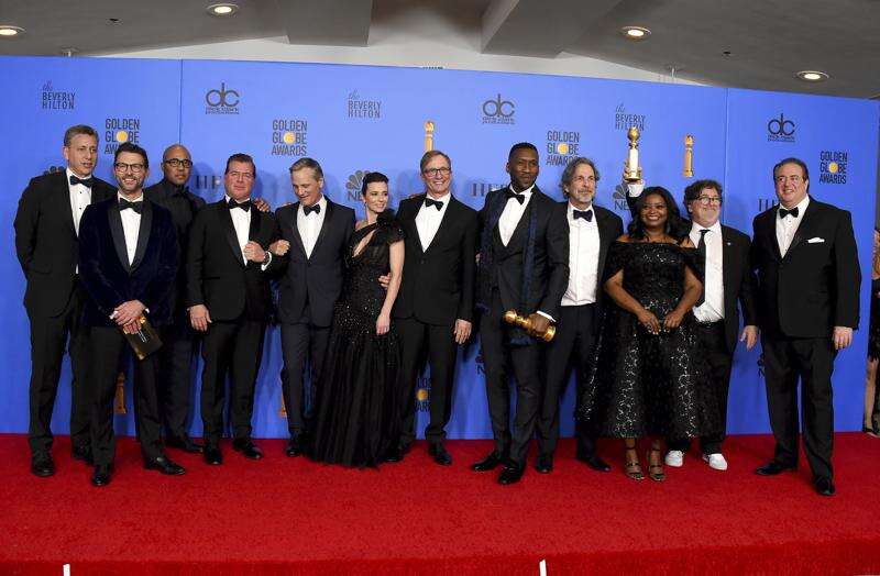 The cast and crew of "Green Book" pose in the press room with the award for best motion picture, musical or comedy at the 76th annual Golden Globe Awards at the Beverly Hilton Hotel on Sunday, Jan. 6, 2019, in Beverly Hills, Calif. (Photo by Jordan Strauss/Invision/AP)