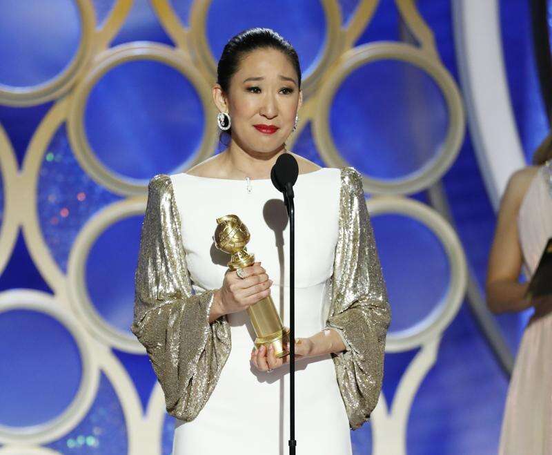 This image released by NBC shows Sandra Oh accepting the award for best actress in a drama series for her role in "Killing Eve" during the 76th Annual Golden Globe Awards at the Beverly Hilton Hotel on Sunday, Jan. 6, 2019 in Beverly Hills, Calif. (Paul Drinkwater/NBC via AP)
