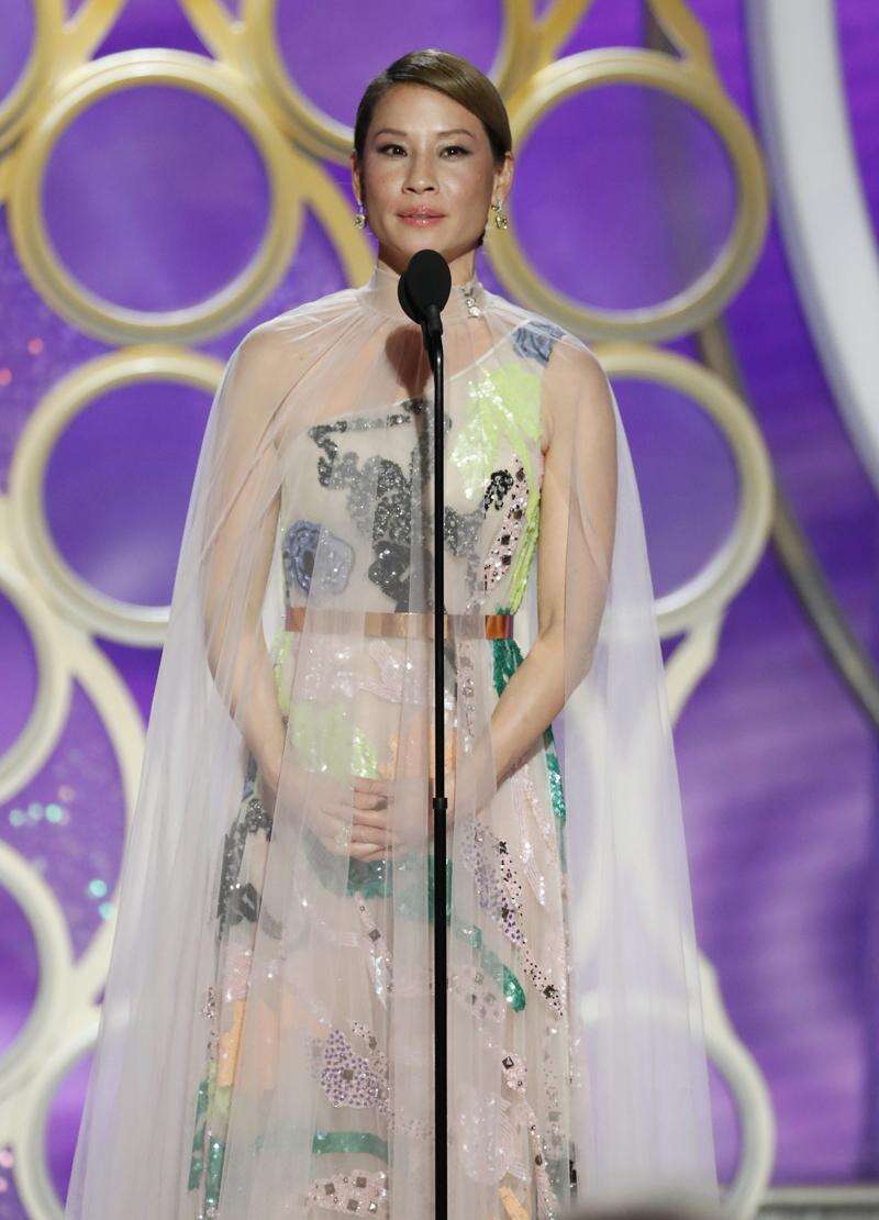 This image released by NBC shows presenter Lucy Liu during the 76th Annual Golden Globe Awards at the Beverly Hilton Hotel on Sunday, Jan. 6, 2019 in Beverly Hills, Calif. (Paul Drinkwater/NBC via AP)